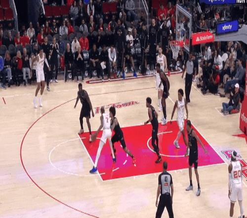 ——他在罚球线策应,让艾顿可留在内线扣篮位空接。